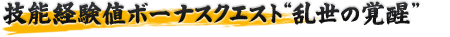 週刊かわら版にて検分クエストを達成すると、その翌週に技能経験値ボーナスを一定回数獲得できるクエスト“乱世の覚醒”が出現します。乱世の覚醒を利用すると、平均レベル40以上の敵から覚醒ボーナスを獲得できます。