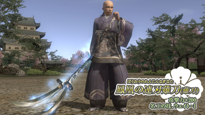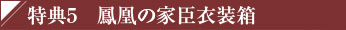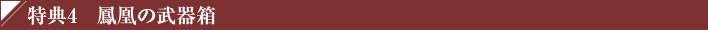 「鳳凰の章」では、プレイヤーの皆様が“家臣団”を形成できますが、その家臣用の装備アイテムです。特典1と同様の3種のセットから1種を選択できます。家臣と同じ装備を着けて、新章へと旅立ちましょう。