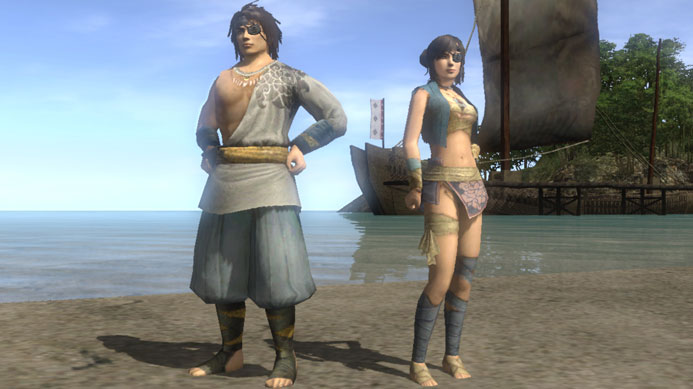 プレイヤーキャラクターの見た目を山賊や海賊といった、一風変わった姿にできる頭装備と胴装備のセットです。プレイヤーキャラクターがレベル1の状態から装備できます。3種から1種をお選びください。また、特典1は改装具としても使用できます。お持ちの装備品の性能はそのままに、見た目だけを写真のように変えられます。