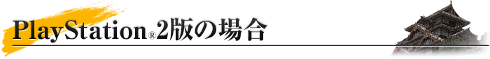 PlayStation®2版では、“城下町”の施設の表示に一部制限が加わります。施設の種別ごとに、初期建築可能な外観のもののみを表示する形になります。詳しくはこちらからご確認ください。