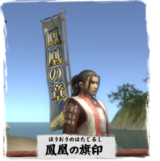 霊鳥“鳳凰”の羽をモチーフにした特製旗指物《鳳凰の旗印》(ほうおうのはたじるし)をプレゼントします。