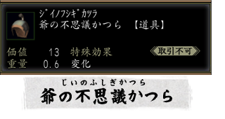 "鳳凰の案内人"より配布されるアイテム《城下町活動帳》(じょうかまちかつどうちょう)を使いながら「鳳凰の章」の各要素を体験することで、特製アイテム《爺の不思議かつら》(じいのふしぎかつら)を獲得できます。