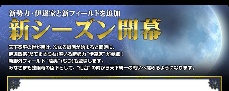 伊達家の本拠地・陸奥の地を新たに開放します。雪に包まれた美しい風景が広がる陰に、厳しい環境を生き抜いてきた、他の地域では見られない強敵が潜んでいます。