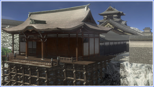 二方面を断崖に守られた天然の要害・仙台城は、仙台の西、青葉山に建っています。“信On”でも見る者を圧倒する巨大な山城です。