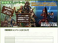 サービス開始2周年を記念して、昨年に続き「東西大合戦」を実施します。皆さんの投票で決まった東軍と西軍の両陣営が、4つの合戦場で大激突をくり広げます。皆さんもいずれかの軍に味方して、戦場を駆け巡ってください。手柄を上げると恩賞が与えられます。