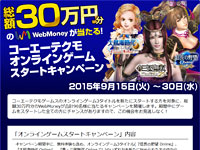 ¥³¡¼¥¨¡¼¥Æ¥¯¥â¥²¡¼¥à¥¹¤Î¥ª¥ó¥é¥¤¥ó¥²¡¼¥à3¥¿¥¤¥È¥ë¤ò¡¢ÌµÎÁÂ賤â´Þ¤á¡¢´ü´ÖÃæ¤Ë¿·¤¿¤Ë¥¹¥¿¡¼¥È¤·¤¿Êý¤òÂоݤˡ¢Áí³Û30Ëü±ßʬ¤ÎWebMoney¤¬¹ç·×90̾ÍÍ(³Æ¥¿¥¤¥È¥ë30̾ÍÍ)¤ËÅö¤¿¤ë¥¥ã¥ó¥Ú¡¼¥ó¤ò³«ºÅ¤·¤Þ¤¹¡£
