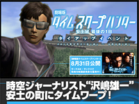 劇場版『タイムスクープハンター 安土城 最後の1日』の主人公、時空ジャーナリスト“沢嶋雄一”が安土に出現! 『信長の野望 Online』の世界で、彼は何を追い駆けるのでしょうか? 本イベントを達成すると、コラボアイテム《劇場版特派員眼鏡》を獲得できます。