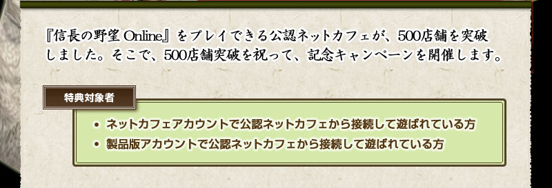 実施期間中に、公認ネットカフェからプレイした際、