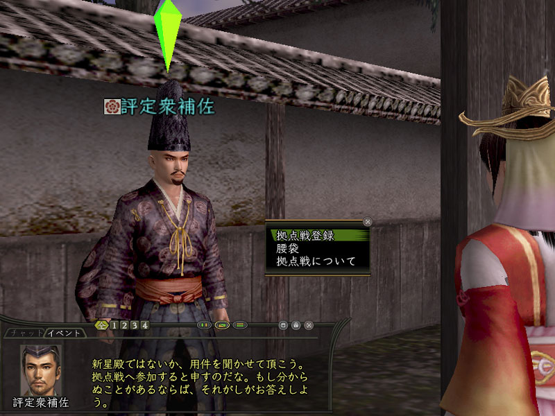 拠点の本陣にいるNPC“拠点軍監”から《共闘の誓紙》(きょうとうのせいし)を受け取って、将兵NPCを誘導しましょう。