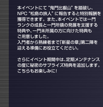 ※“鬼門比叡山”に挑むには、「新星の章」の製品版アカウント(もしくはネットカフェアカウント)で、キャラクターのレベルが45以上