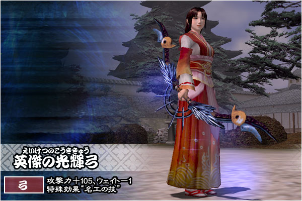 ・千両箱(2個) ・新星の武器箱・極(全9種、1個選択) ※武器の強化時には、“付与値”を合計70ポイントまで割り振れます。ただし、1つの能力に設定できる付与値の上限は55ポイントで、例外として、生命付与の上限のみ20ポイント(生命付与300)です。 ※武器の強化は何度でもでき、その都度、付与値を割り振れます。 ・改装具三宝箱(全3種、各1個ずつ) > 擬獣化改装箱(全4種、1個選択) ※それぞれ頭装備改装具(1個)と胴装備改装具(1個)がセットになっています。 > 決戦準備改装箱(全4種、1個選択) ※それぞれ頭装備改装具(1個)と胴装備改装具(1個)がセットになっています。 ※プレイヤーキャラクターの性別によって、男性用か女性用かが決まります。 > 戦国旅衣装改装箱(全4種、1個選択) ※それぞれ武器改装具(1個)、頭装備改装具(1個)、胴装備改装具(1個)がセットになっています。 ※《戦国旅衣装改装箱》で手に入る改装具は、『信長の野望 Online 〜新星の章〜』(PlayStation®3版)の パッケージ製品に付属していた《戦国旅立ち箱》で手に入る改装具と同じものです。 ・伊勢の金箔短冊(1個) ・風林火山の書(全4種、各1枚ずつ) ・成長支援箱(1個) ・毘沙門天の薬箱(全3種、各5個ずつ) |