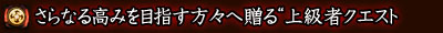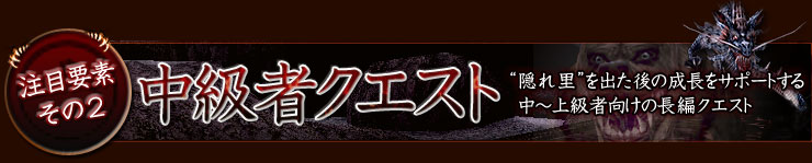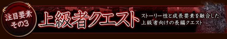 「争覇の章」では、“隠れ里”を卒業したプレイヤーに向けた次なる長編クエスト“中級者クエスト”を導入しますが、さらにその上を行くクエストも同時にご用意いたします。それが“上級者クエスト”です。
