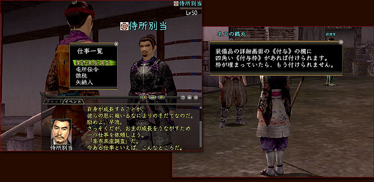 「争覇の章」ではこの流れに沿って、新たな連続型の長編クエスト“中級者クエスト”を導入します。“中級者クエスト”は“隠れ里”を卒業したプレイヤーを対象にしたもので、これを進めていくと『信長の野望 Online』をプレイする上で必要な数々の知識を吸収できると共に、キャラクターのさらなる成長が見込めます。また、“中級者クエスト”の報酬として、経験値や修得度はもちろん、装備品なども手に入ります。