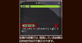 “中級者クエスト”の中には、依頼内容欄に「支援可能」と書かれたものがあります。これは上級者の皆さんや中級者クエストを進めている人が、その依頼を手伝えることを表しています。手強いクエストには皆で協力して挑んでみましょう。