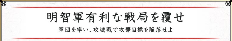攻城戦では、制限時間内に“攻撃目標”の耐久を0にすると勝利となり、一方、時間切れや“自軍本陣”の耐久が0になると敗北となります。