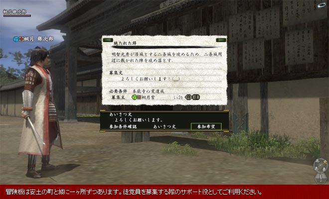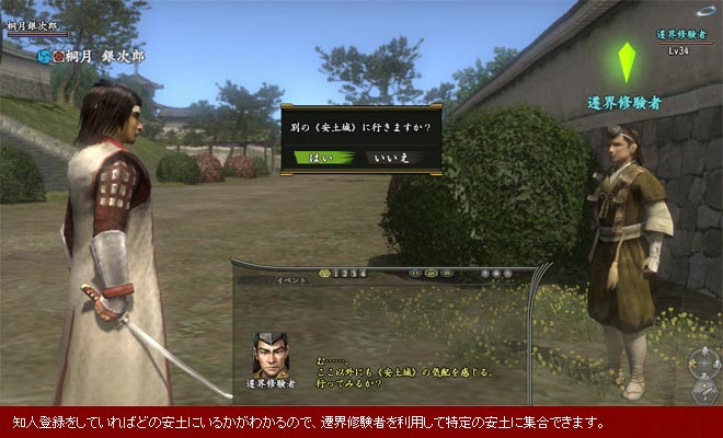 本国から堺へ移動するなど、時間のかかる移動については、依頼を紹介してくれたNPCに話し掛けることで、現地に転送してもらえるようになります。