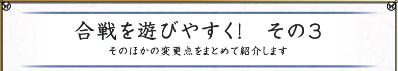 なお、敵陣を奪取した際は、合戦場にいる全員に“奪取した陣での働き”に応じた手柄が分配されるようになりますが、この時に獲得できる手柄を最も大きな値として全体を調整しています。