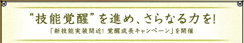 「天下夢幻の章」第四陣「決戦の刻」での新技能登場に先駆けて、「新技能実装間近! 覚醒成長キャンペーン」を実施します。