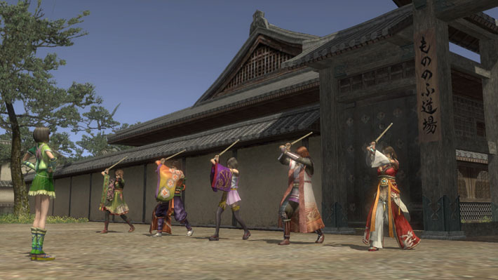 期間中に安土のNPC《もののふ小町》からもらえるアイテム《鍛練用竹刀》を使用すると、「素振り」の動作を行えます。特定の時間帯に安土で「素振り」を行うことで、「皆で鍛練」に参加できます。