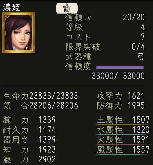 効果:英傑「愛姫」が、必ず仲間になる。 ※英傑「愛姫」の能力値は。 濃姫喚鈴×1 効果:英傑「濃姫」が、必ず仲間になる。 ※英傑「濃姫」の能力値は。 ●等級四招喚鈴・ち×1 効果:《英傑の招喚鈴・ち》に含まれる等級四英傑の中からランダムで1つを入手できる。 ●夢幻の功績帳・参×6 効果:使用すると英傑信頼度を1,000入手できる。