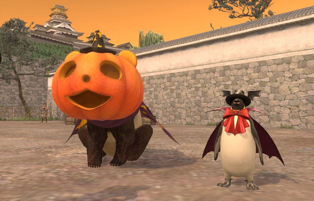 〇魔祭熊猫 かわいいかぼちゃマスクをかぶった、ハロウィン仮装のパンダです。技能の効果は高く、最後に覚える技は強烈な攻撃と回復を両立しており非常に強力。通常のパンダと比べて全ての能力が高くなっています。 |