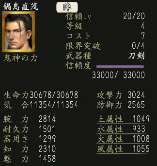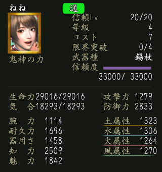 | 気合修練上昇Lv.2 | 家臣闘練で気合上昇系の修練に配置された時に、鍛錬効果を上げる。 | ||||