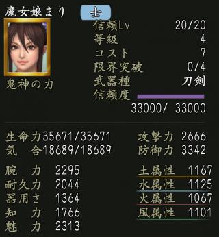 | 魅力上昇Lv.1 | 家臣闘練で修練内容に配置された時に、魅力の上昇量を上げる。 |