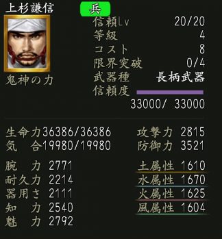 効果:英傑「上杉謙信・野望」が、必ず仲間になる。