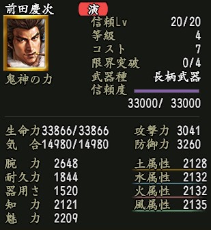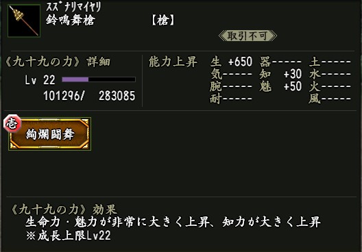 | 生命上昇Lv.5 | 家臣闘練で修練内容に配置された時に、生命力の上昇量を上げる。 | |||||