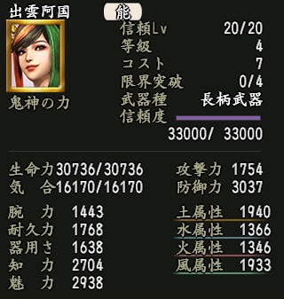| 魅力上昇Lv.5 | 家臣闘練で修練内容に配置された時に、魅力の上昇量を上げる。 | |||||
