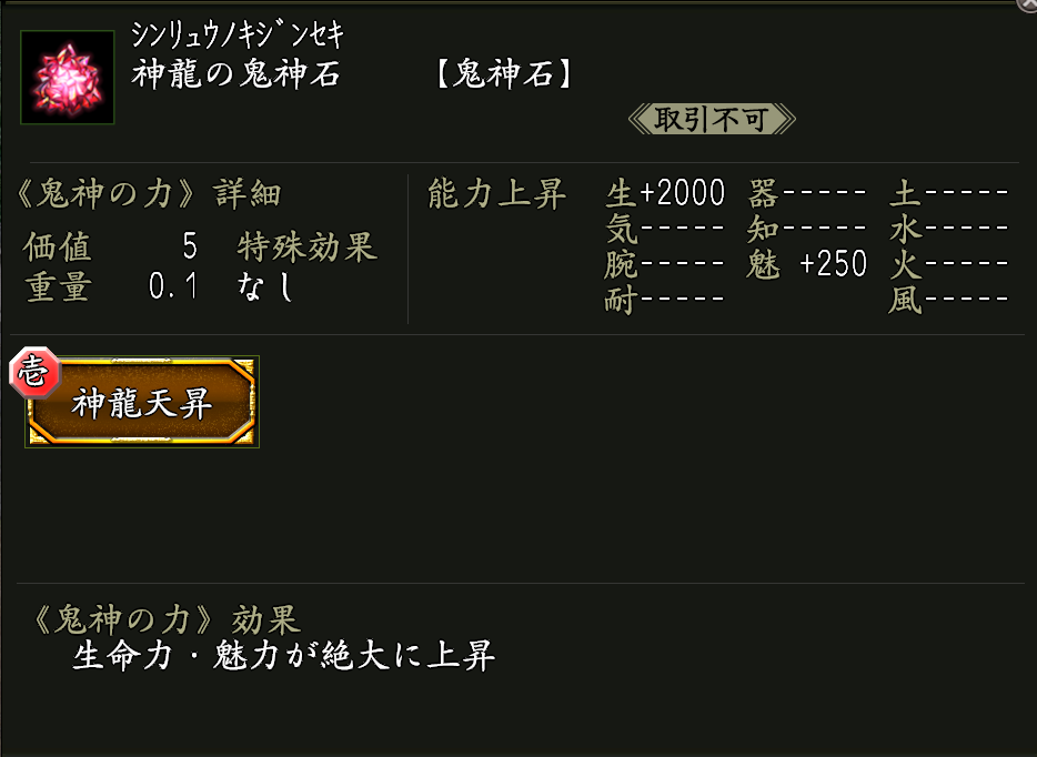 NEW ●神龍の鬼神石×1 効果:鬼神の力「神龍天昇(しんりゅうてんしょう)」が付いた鬼神石。
