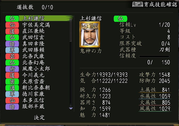 | 魅力上昇Lv.5 | 家臣闘練で修練内容に配置された時に、魅力の上昇量を上げる。 | |||||