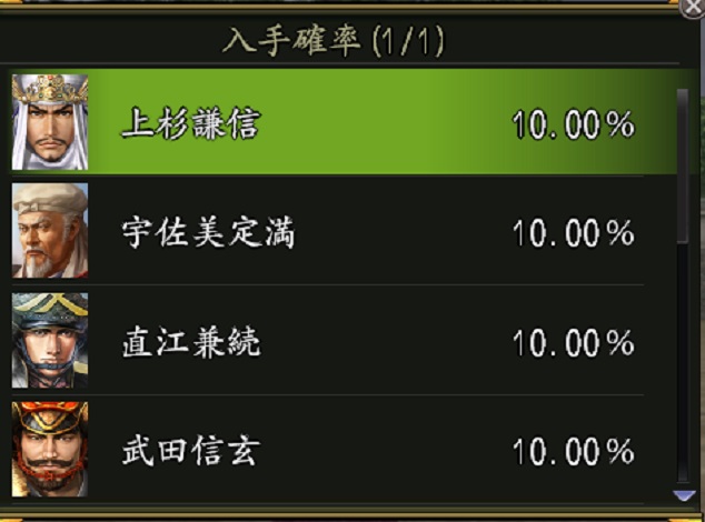 効果:英傑「前田慶次・野望」が、必ず仲間になる。