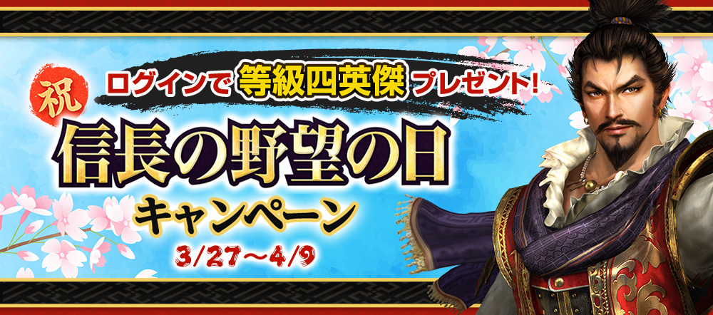 ●等級四招喚鈴・ふ×1 効果:《英傑の招喚鈴・ふ》に含まれる等級四英傑の中からランダムで1つを入手できる。 ●夢幻の功績帳・参×6 効果:使用すると英傑信頼度を1,000入手できる。