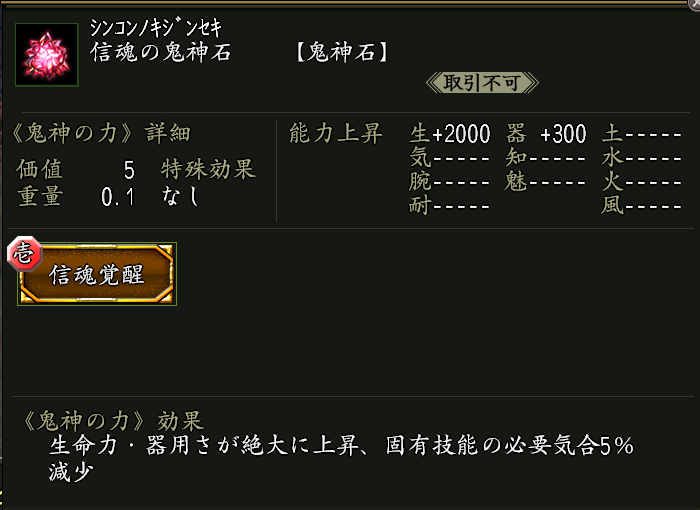 効果:鬼神の力「信魂覚醒(しんこんかくせい)」が付いた鬼神石。
