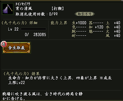 効果:九十九の力「舎生取義(しゃせいしゅぎ)」が付いた武器。