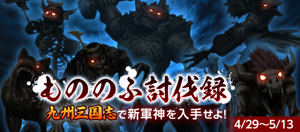 今回は、大友家・島津家・龍造寺家が九州の覇権を賭けてしのぎを削るダンジョン「九州三国志」の《大友宗麟》や《島津義久》、《龍造寺隆信》が討伐対象として登場します。《破天荒な討伐録》に記された強敵を撃破して、宝箱と交換できる札を獲得しましょう!