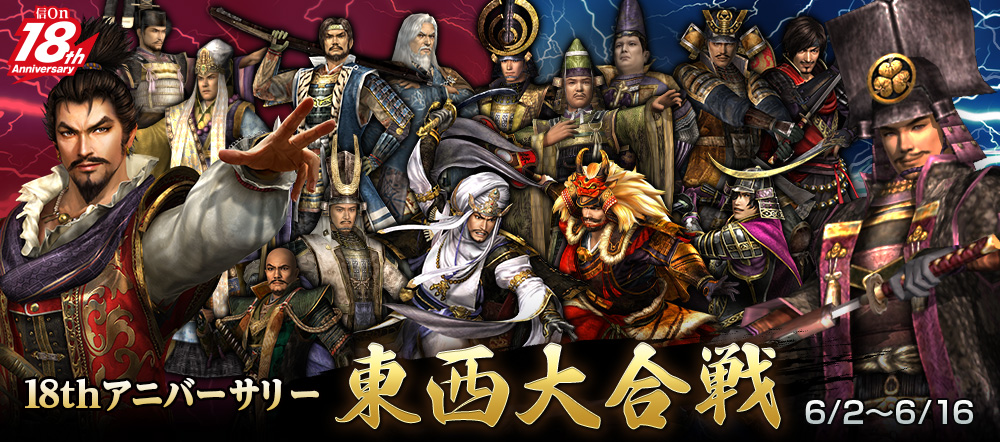 2021年6月12日(土)に迎える『信長の野望 Online』18周年を記念し、本日2021年6月2日(水)より「18thアニバーサリー東西大合戦」を開催します。