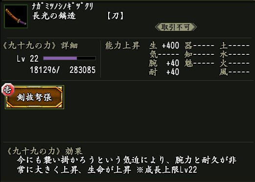 ※九十九の力「厭離穢土(おんりえど)」、「剣抜弩張(けんばつどちょう)」の能力値について修正しました(2021年6月3日12:45追記)