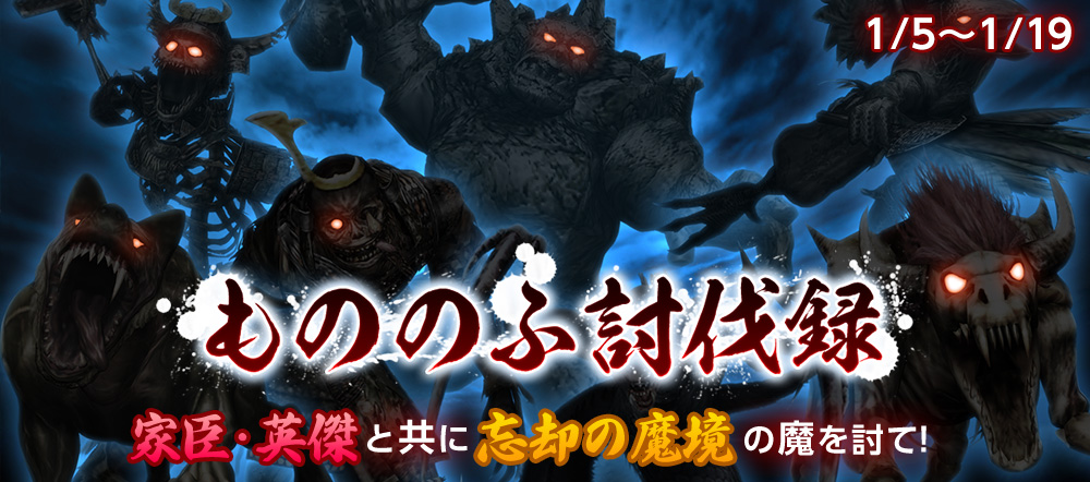 『信長の野望 Online』の歴戦の敵にチャレンジする討伐イベントを開催します。ダンジョン「忘却の魔境」の敵を討伐し、入手した札と宝箱を交換して豪華報酬品を手に入れましょう!