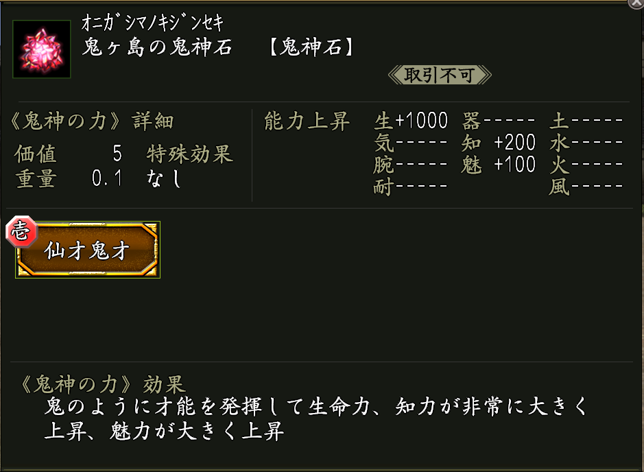 鬼神の力「仙才鬼才」が付いた鬼神石。