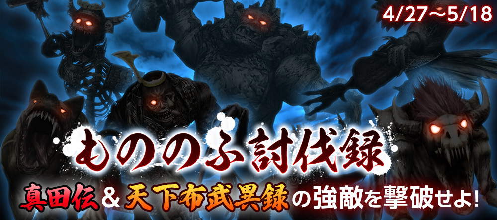 今回はダンジョン「真田伝」や「天下布武異録・信長編」に出現するボスなどが討伐対象となり、毎週定期メンテナンス時に切り替わります。また、討伐対象ごとに、初回達成報告時の追加報酬があります。毎週の討伐対象をお見逃しなく!