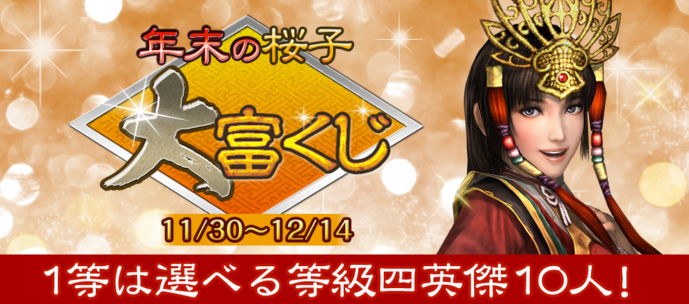 使用すると、下記アイテムから1つ選んで取り出せる。 ●お供出会大箱・九×1 NEW ●家臣闘練用具小包×5 効果:使用すると、下記アイテムを取り出せる。 ・《闘練検討書・壱》×1 ・《修練教本箱・壱》×1、 ・《修練秘伝箱・壱》×1 ●英傑の招喚鈴・つ×2 ●軍神おみくじ・六×10 |