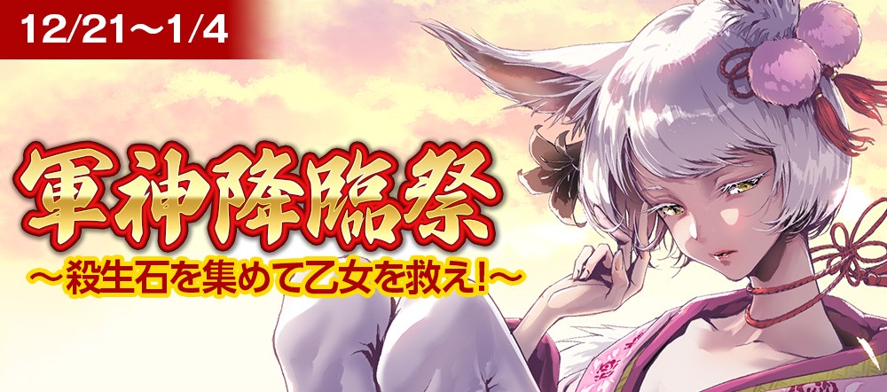 軍神の育成に役立つアイテムが詰まった箱。 使用すると、下記のアイテムを取り出せる。 ●軍神おみくじ・参×2 ●軍神おみくじ・四×2 ●力の源・極×150 ●神具引換券×10