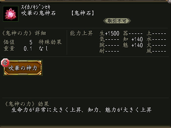 鬼神の力「吹華の神力」が付いた鬼神石。