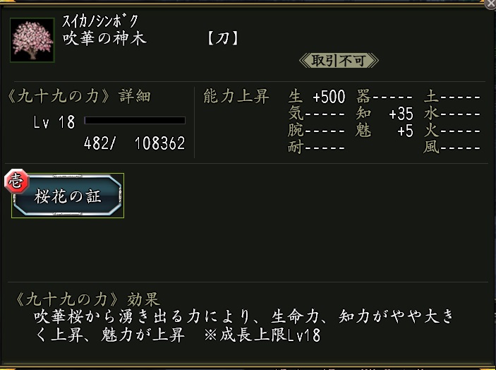 ※「桜花の証」は他の系統の九十九の力と重複扱いになりません。