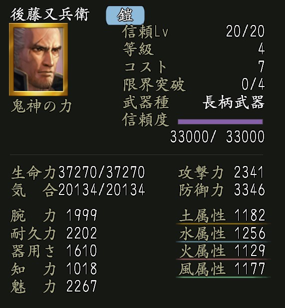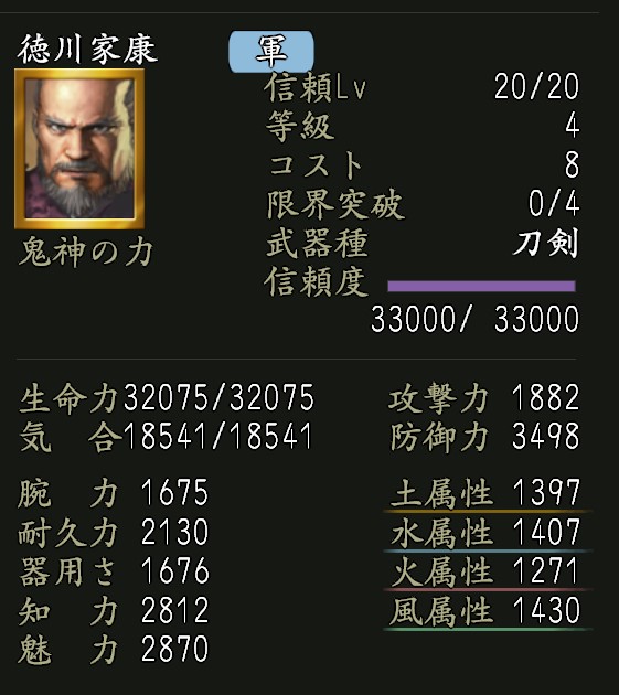 | 耐久上昇率向上Lv.2 | 家臣闘練で修練内容に配置された時に、耐久力の上昇割合を上げる。 |
