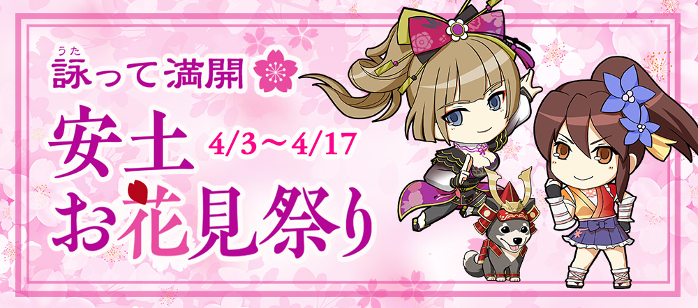 強力な九十九武器や鬼神石のほか、プレイヤーキャラクターや英傑・軍神を強化するアイテムを確率で入手できる《春桜の宝箱》、春らしい旗指物や家具などが登場します。