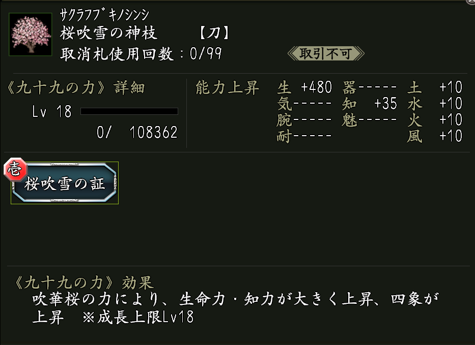 ※「桜吹雪の証」は他の系統の九十九の力と重複扱いになりません。