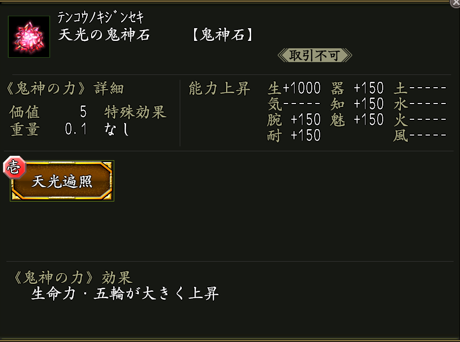 鬼神の力「天光遍照(てんこうへんじょう)」が付いた鬼神石。